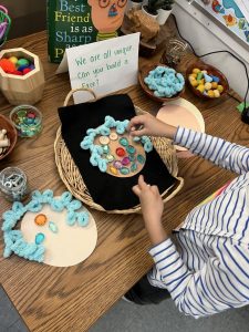 We are all unique. Students are exploring that concept in class through a variety of activities. One way is by extending their learning at the exploration/provocation table.