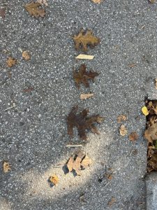 Taking advantage of the beautiful weather, we made repeating patterns outside using materials found in nature. Can you name the core (i.e. AB, ABB, AAB, ABC) of each pattern?