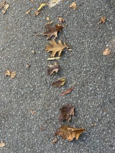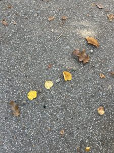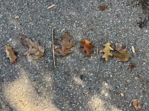 Taking advantage of the beautiful weather, we made repeating patterns outside using materials found in nature. Can you name the core (i.e. AB, ABB, AAB, ABC) of each pattern?