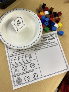 Materials: Ghost, paper plate, unifix cubes and snap cubes