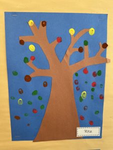 Last week in Art, we used our fingers to mimic fall leaves. We learned that leaves in the fall comes in a variety of colours- red, orange, yellow, green, and brown. Come check out our artwork in the classroom!