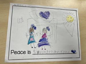In class, we learned about Remembrance Day and what peace is. Here are some ideas of what peace is.