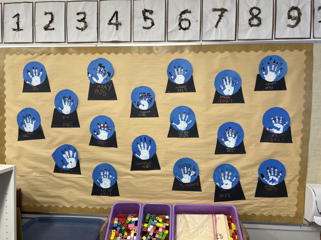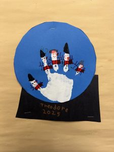 Students turned their handprints into five snowmen in a snow globe. How adorable do they look?!