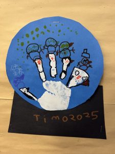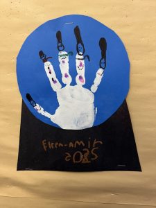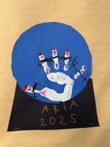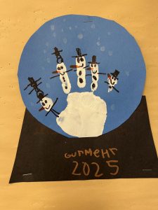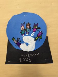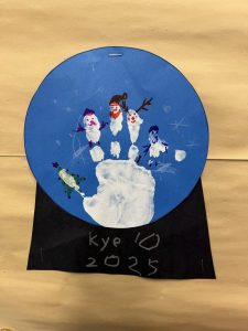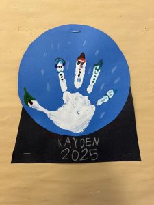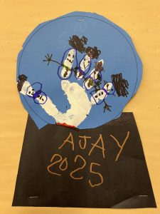 Students turned their handprints into five snowmen in a snow globe. How adorable do they look?!