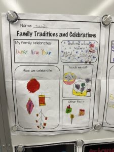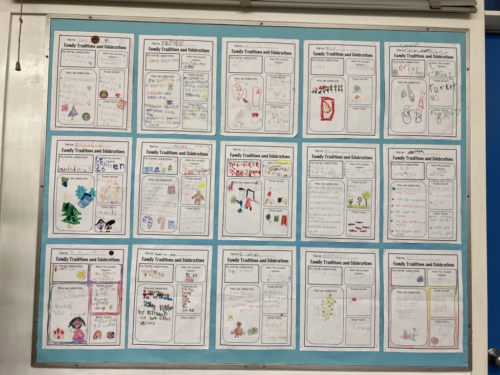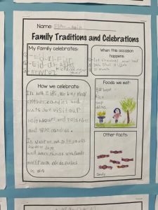Our cultural diversity show and tell sessions and family traditions and celebrations poster presentations were informative. Students became the teacher and taught the class (and I) a bit about their family culture. Thank you for helping your child prepare for this activity. It was a great success!