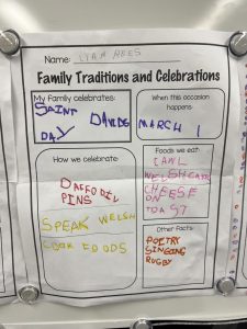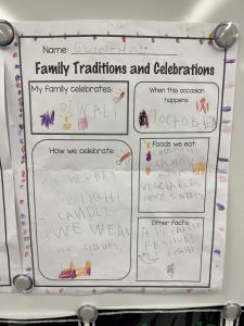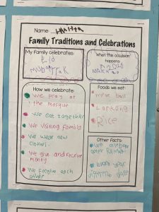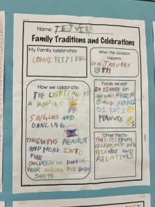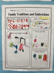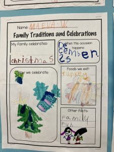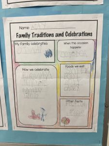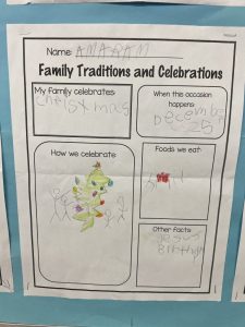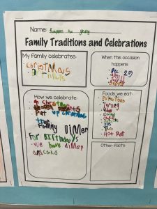 Our cultural diversity show and tell sessions and family traditions and celebrations poster presentations were informative. Students became the teacher and taught the class (and I) a bit about their family culture. Thank you for helping your child prepare for this activity. It was a great success!
