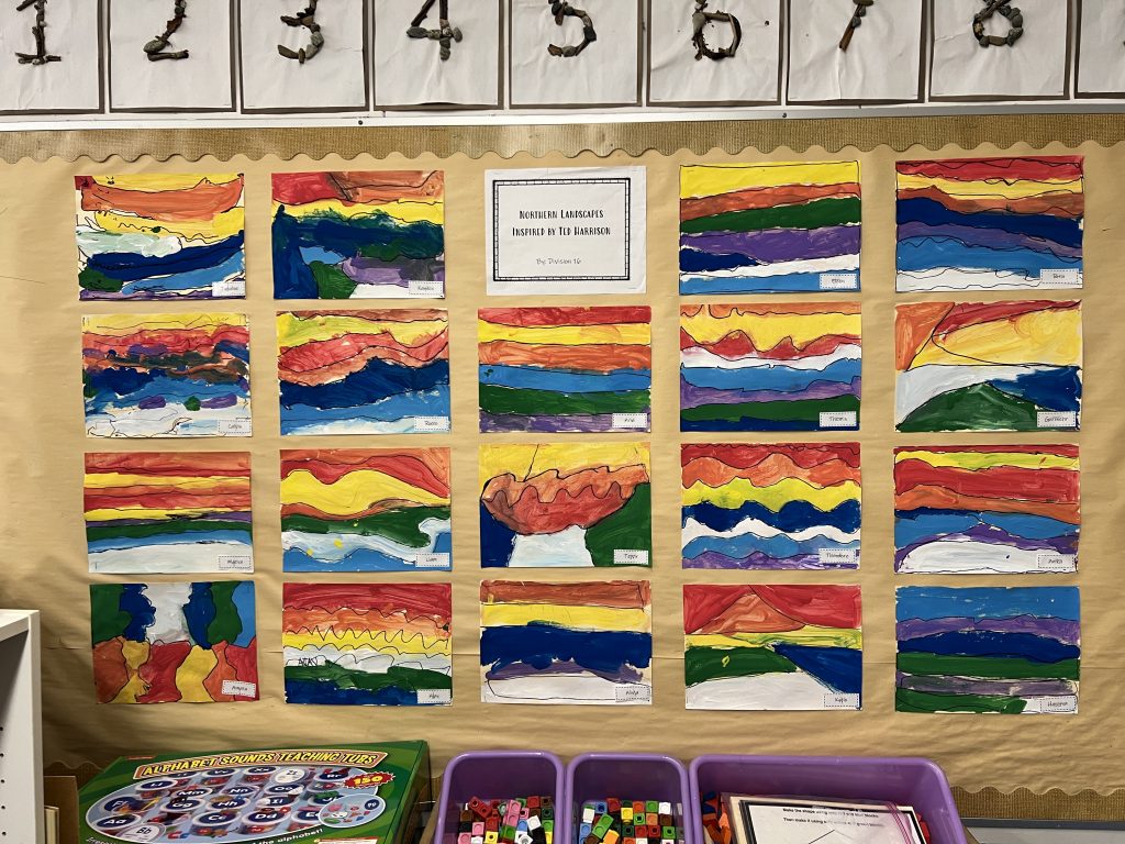 After the art lesson, students created their own landscapes inspired by Ted Harrison.