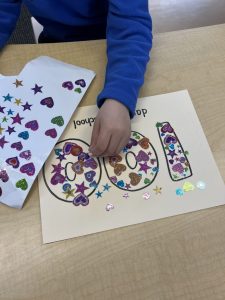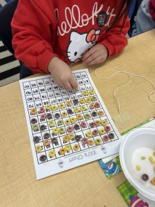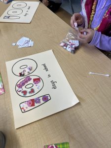 Sorry, it has been a very busy month! February 17th was the 100th day at school! Hooray! Your child is 100 days smarter! We celebrated the day by doing some fun activities at school: 100 erasers in the guessing jar, 100 Fruit Loops on a necklace, roll the dice to 100 game, and an art project with 100 things.