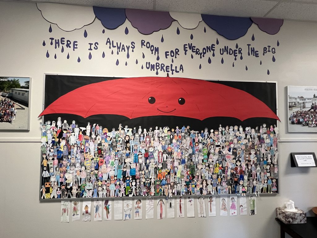 The students read The Big Umbrella, a story about kindness and inclusion. Then each student created a self-portrait of themselves.
