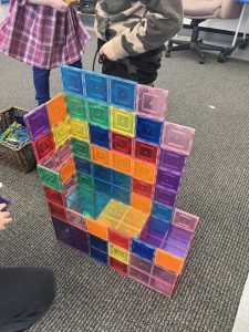 Students worked in small groups and experimented with different materials to create the tallest structure. We focused on teamwork and cooperation- sharing, taking turns, and communicating with one another. The class did an amazing job working together to build structures.