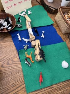 At our provocation table, our students are asked to build a bridge for the animals to cross the river safely. Students were creative in building a bridge for the animals.